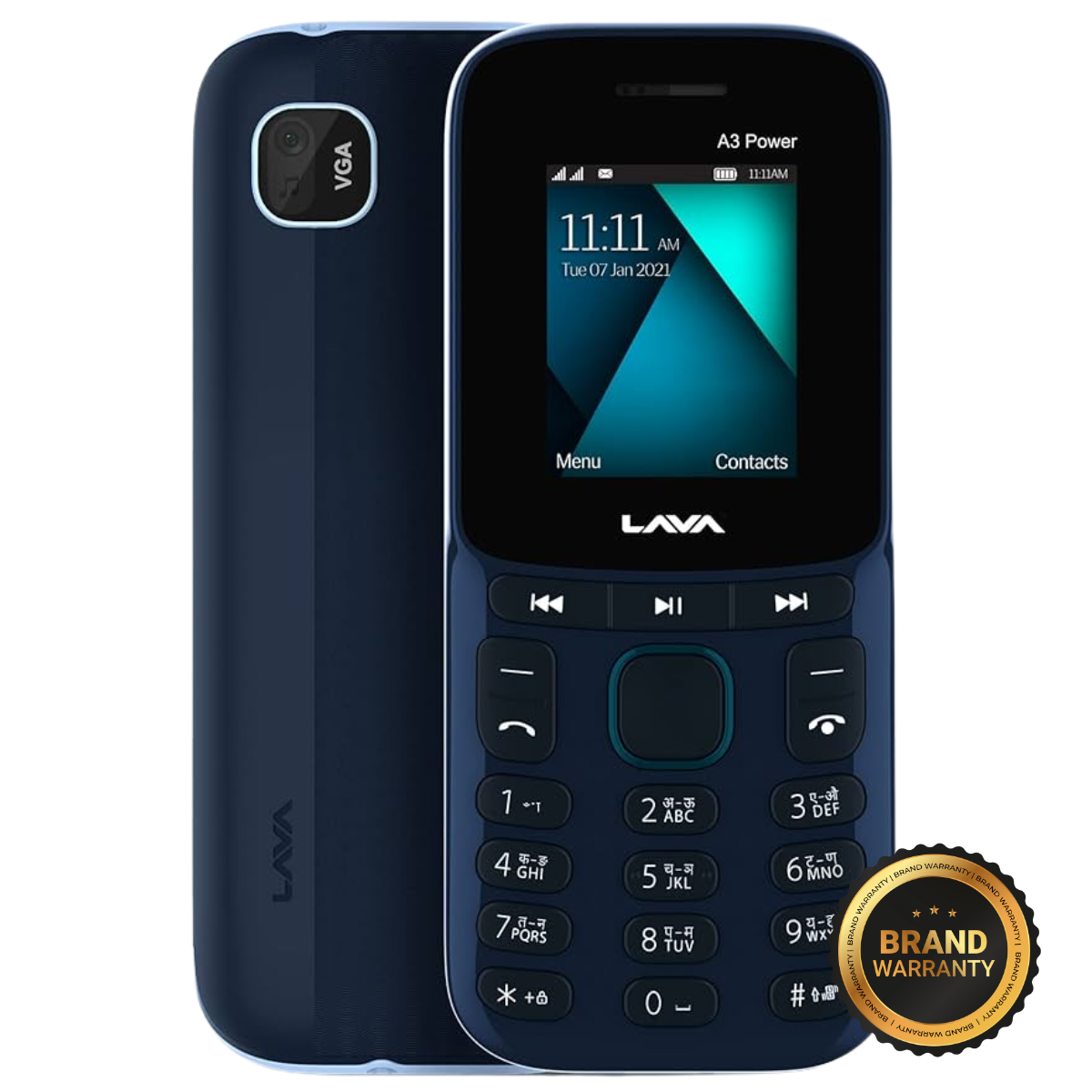 Buy Lava A3 Power foldable Android phone with 1GB RAM, 2575mAh battery, dual SIM, 720p display, rear camera, Bluetooth, USB, and AGPS in Aqua Blue.