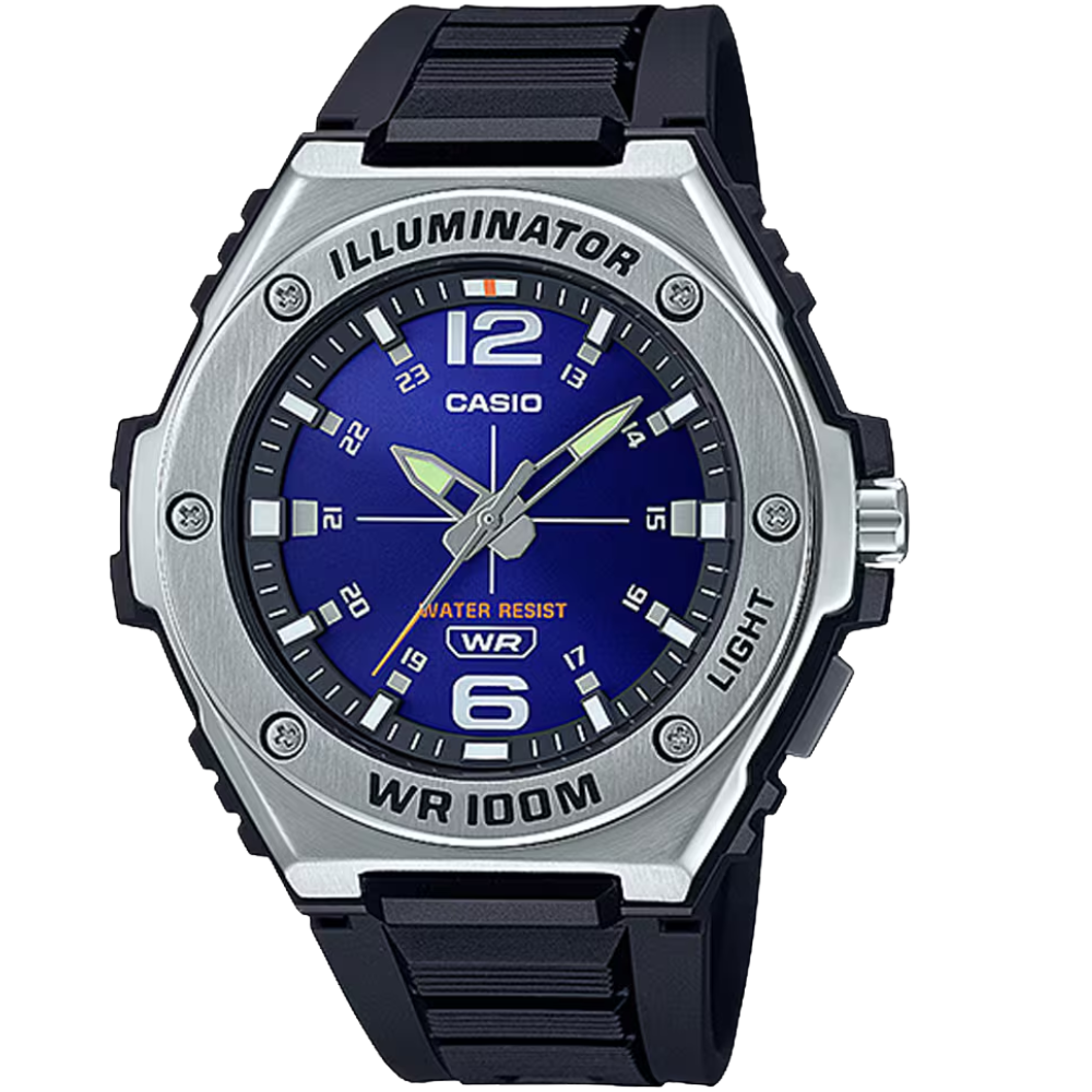 The Casio MWA-100H-2AVDF is a rugged Youth Illuminator analogue watch designed for active men. Featuring amber LED lighting, 100-meter water resistance, a durable resin–stainless steel case, and long battery life, it delivers toughness, comfort, and reliable performance for daily and outdoor use.