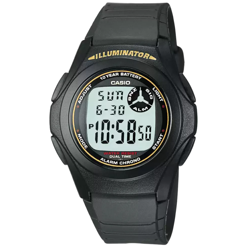 The Casio Dual Time Digital Watch combines durability and long-lasting performance. Featuring a 10-year battery, dual time function, water resistance, and LED backlight with afterglow, it ensures reliability day and night. With a stopwatch, multi-function alarm, and auto-calendar up to 2099, this watch is built for active and practical lifestyles.
