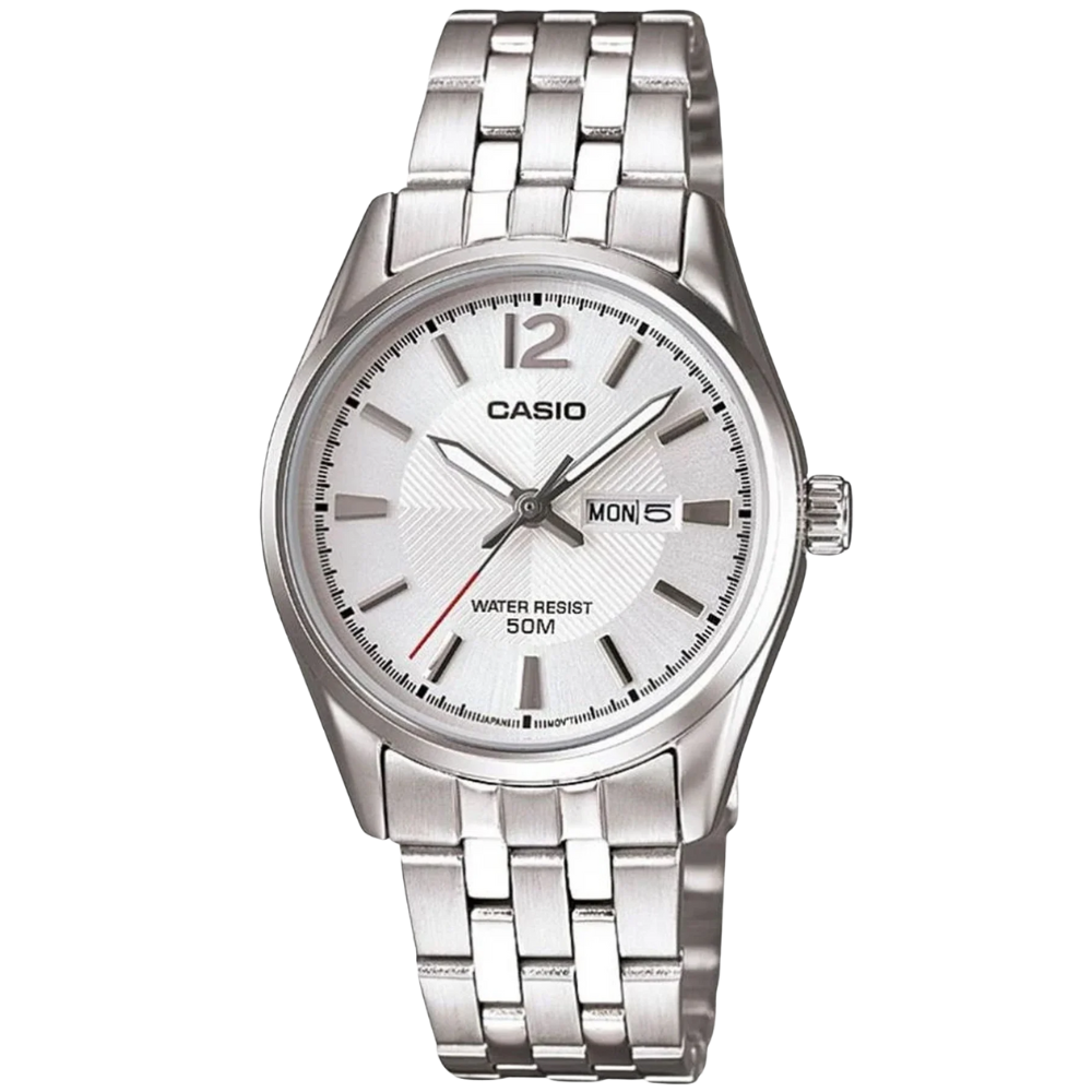 The Casio LTP-1335D-7AVDF is a stylish women’s analog watch featuring a day-date display, ion-plated case, mineral glass, and stainless steel band. With 50-meter water resistance, precise quartz accuracy, and a durable 3-year battery life, it perfectly balances elegance and everyday functionality.