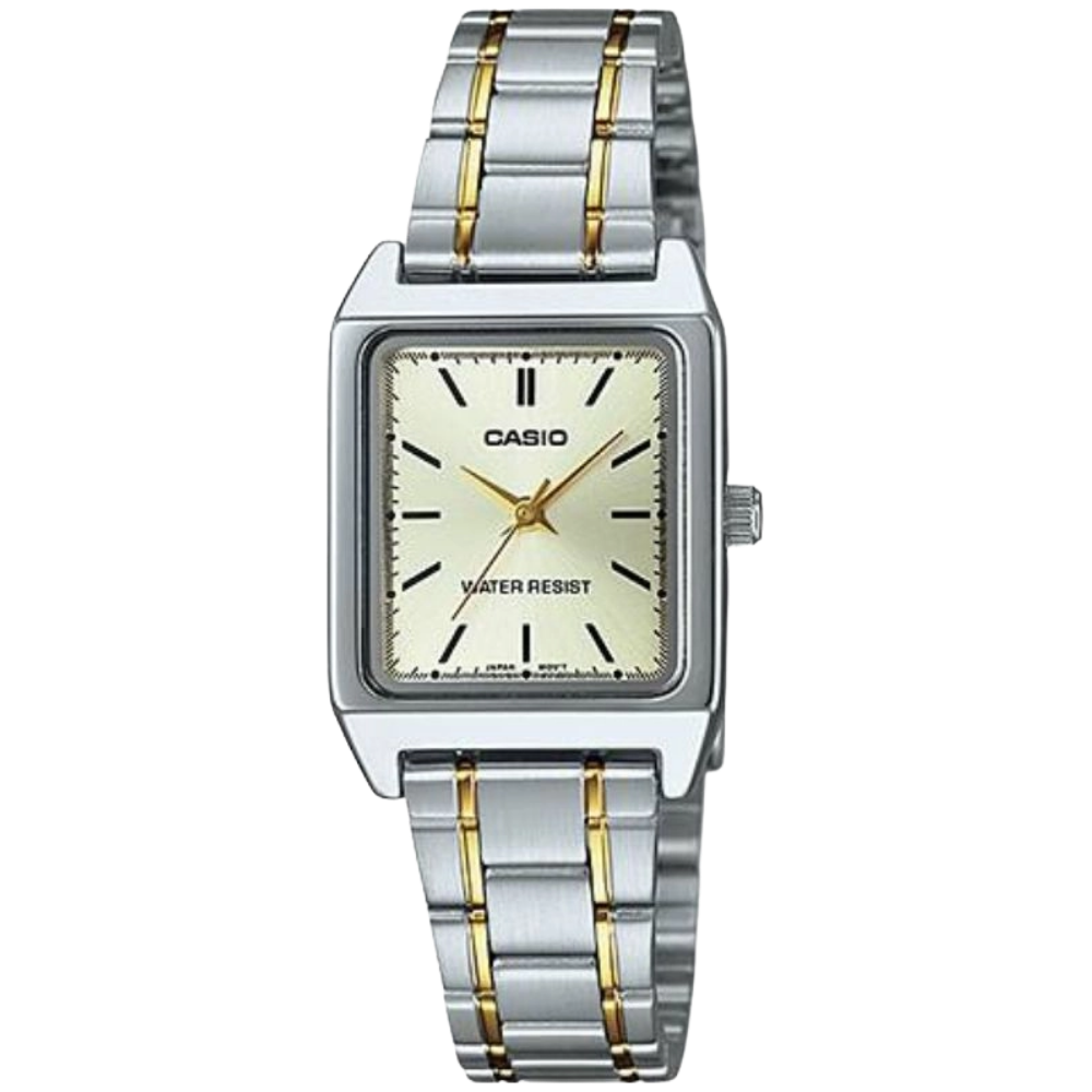 Casio LTP-V007SG-9EUDF is a graceful women’s analog watch featuring a rectangular case and refined gold-tone accents. Built with mineral glass, stainless steel band, and Japanese quartz movement, it ensures accurate timekeeping and long battery life. Its slim, elegant design makes it perfect for office, casual, and formal occasions.