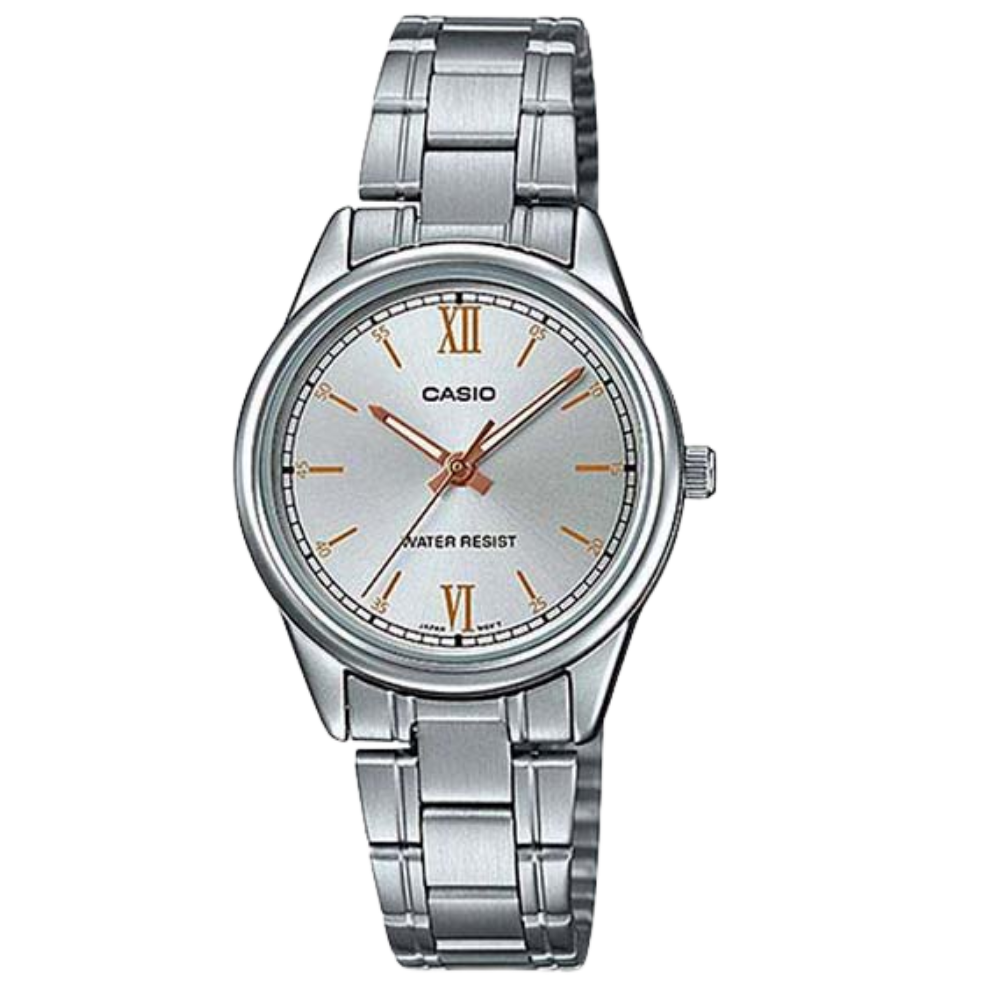 Timeless Silver Elegance — CASIO LTP-V005D-7B2UDF Women’s Analog Watch