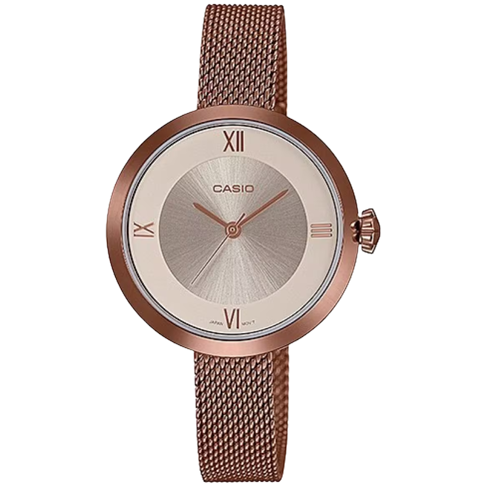 The Casio LTP-E154MR-7ADF Women’s Analog Watch features a silver dial, rose gold mesh band, and stainless-steel case. Designed with mineral glass protection and quartz precision, it delivers ±20 seconds of monthly accuracy. Stylish yet durable, this timepiece ensures long-lasting elegance with a 3-year battery life on SR626SW.