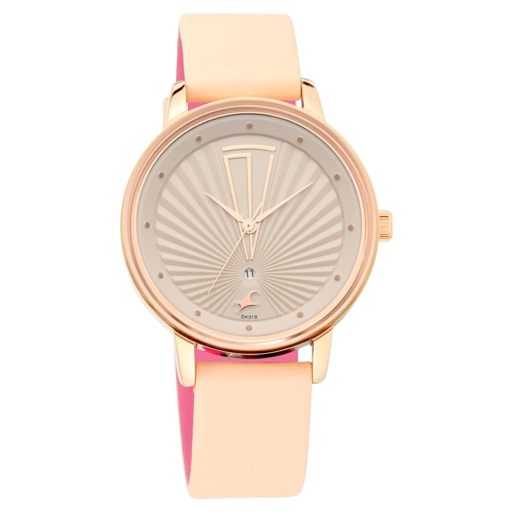 Fastrack Ruffles Quartz Analog with Date Peach Dial Peach Leather Strap Watch for Girls -6206WL01