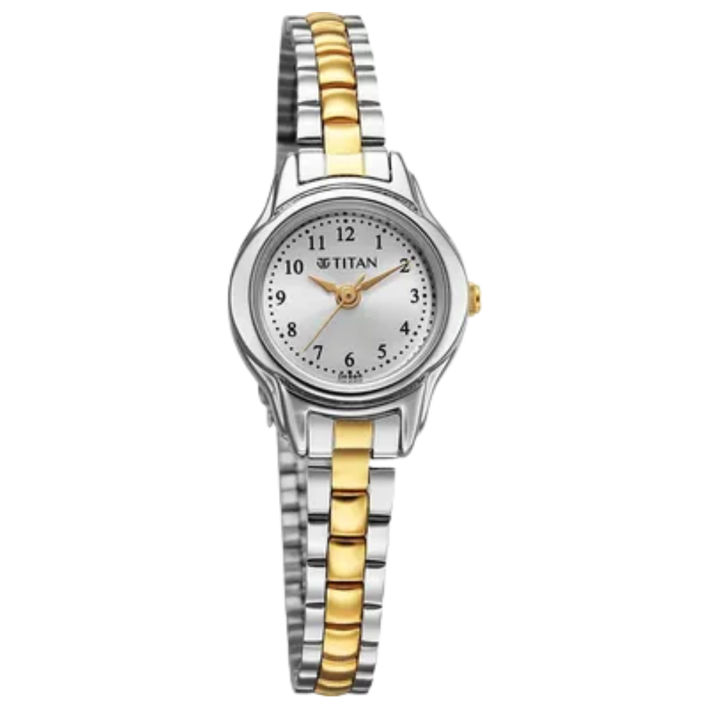 Titan Karishma Women’s Watch – Classic Silver Dial, Two-Tone Stainless Steel