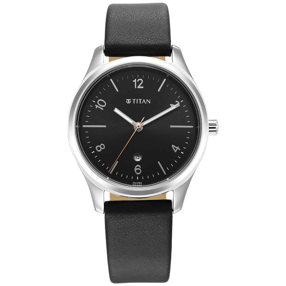 The Titan Urban 2639SL13 women’s watch features a sophisticated anthracite black dial paired with a premium black leather strap. Powered by quartz movement and protected with mineral glass, this analog watch offers refined style, comfort, and everyday reliability for modern women.