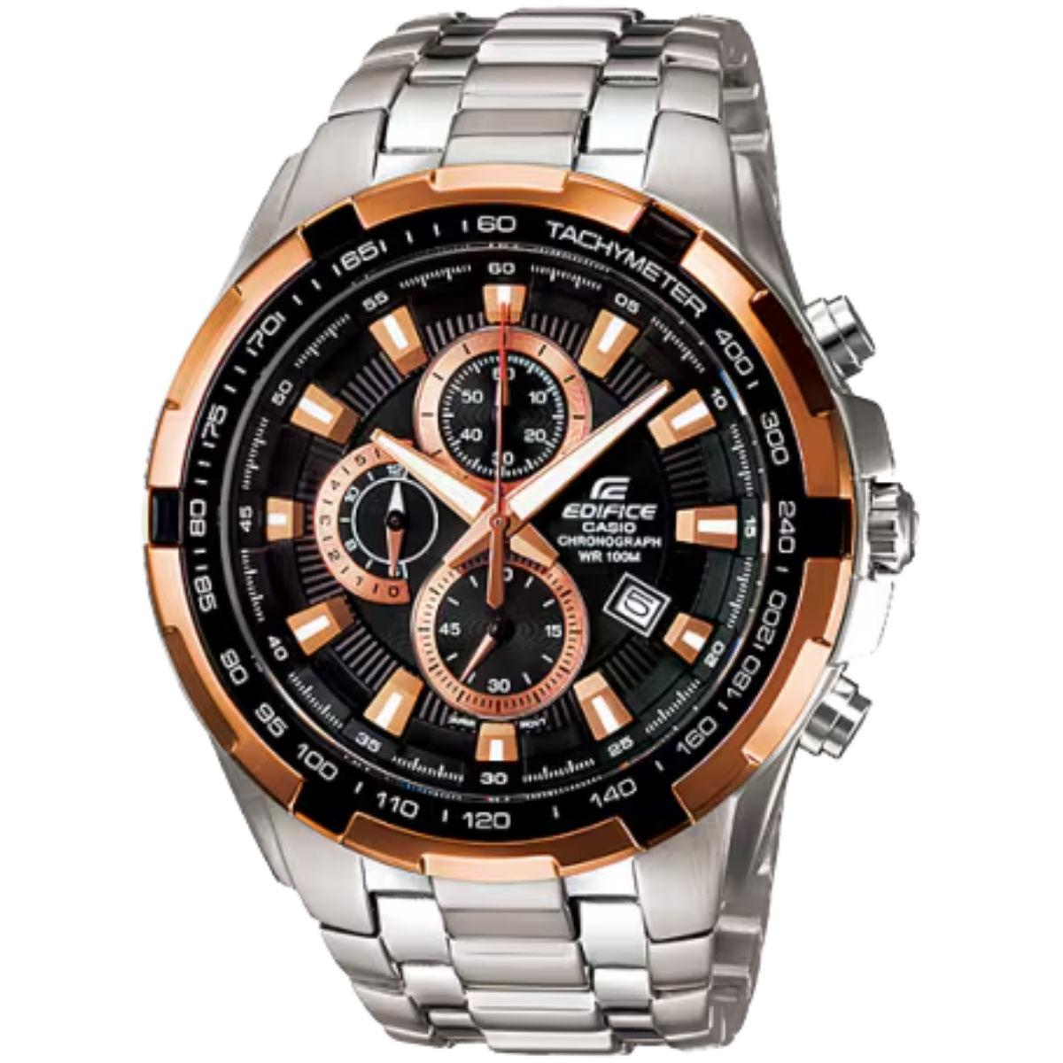 Shop the Casio Edifice EF-539D-1A5VUDF featuring tachymeter, 1-second stopwatch, stainless steel build, ion plating, 100m water resistance, and bold chronograph styling. Accurate, durable, and designed for performance.