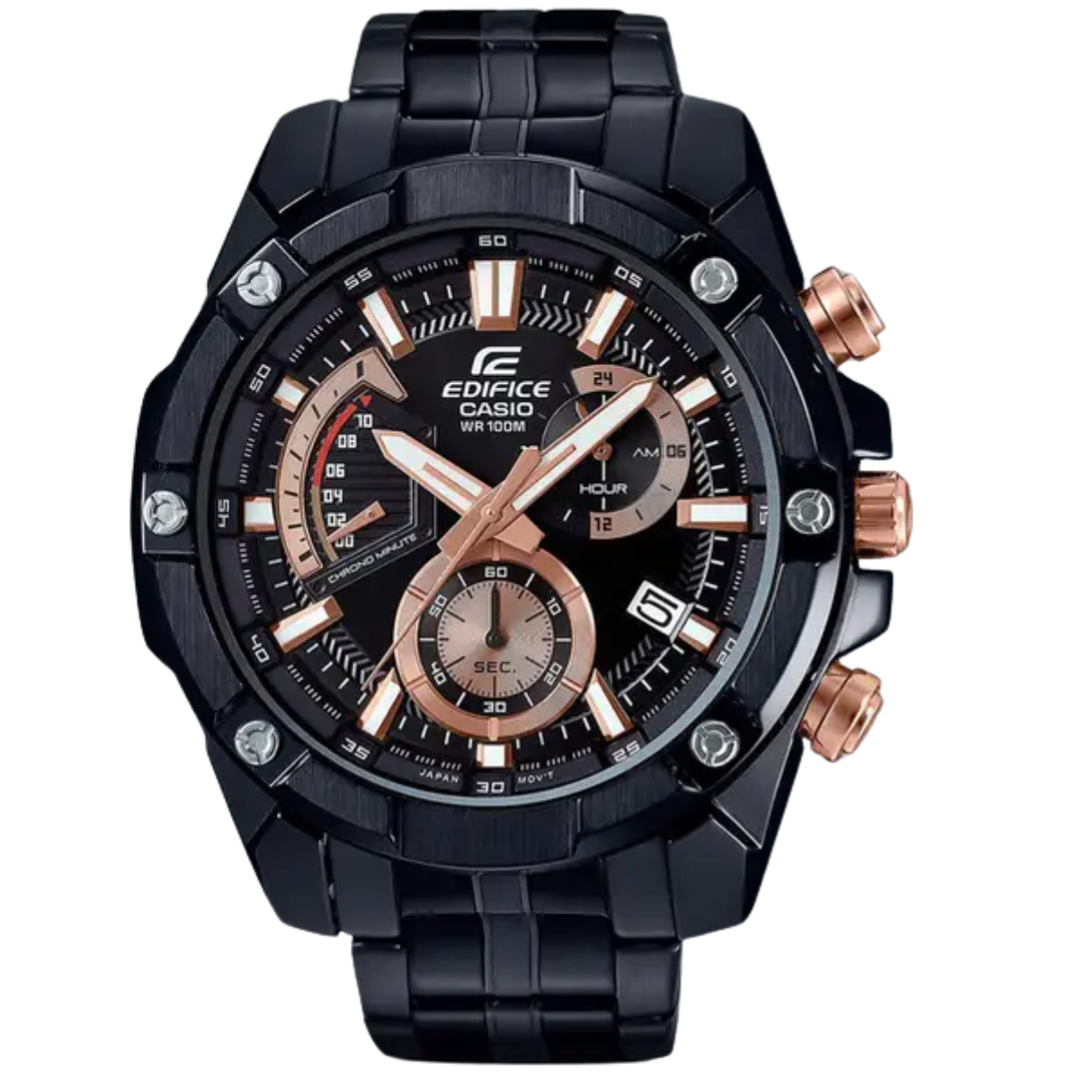 Shop the Casio Edifice EFR-559DC-1AVUDF featuring a black ion-plated finish, retrograde dial, stainless-steel band, 1-second stopwatch, 100M water resistance, and 3-year battery life.