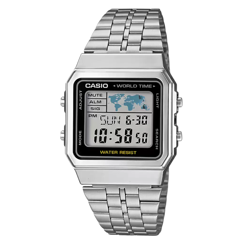 Casio A500WA-1DF Vintage World Time Digital Dial Gent's Watch, Global Time, Local Style.