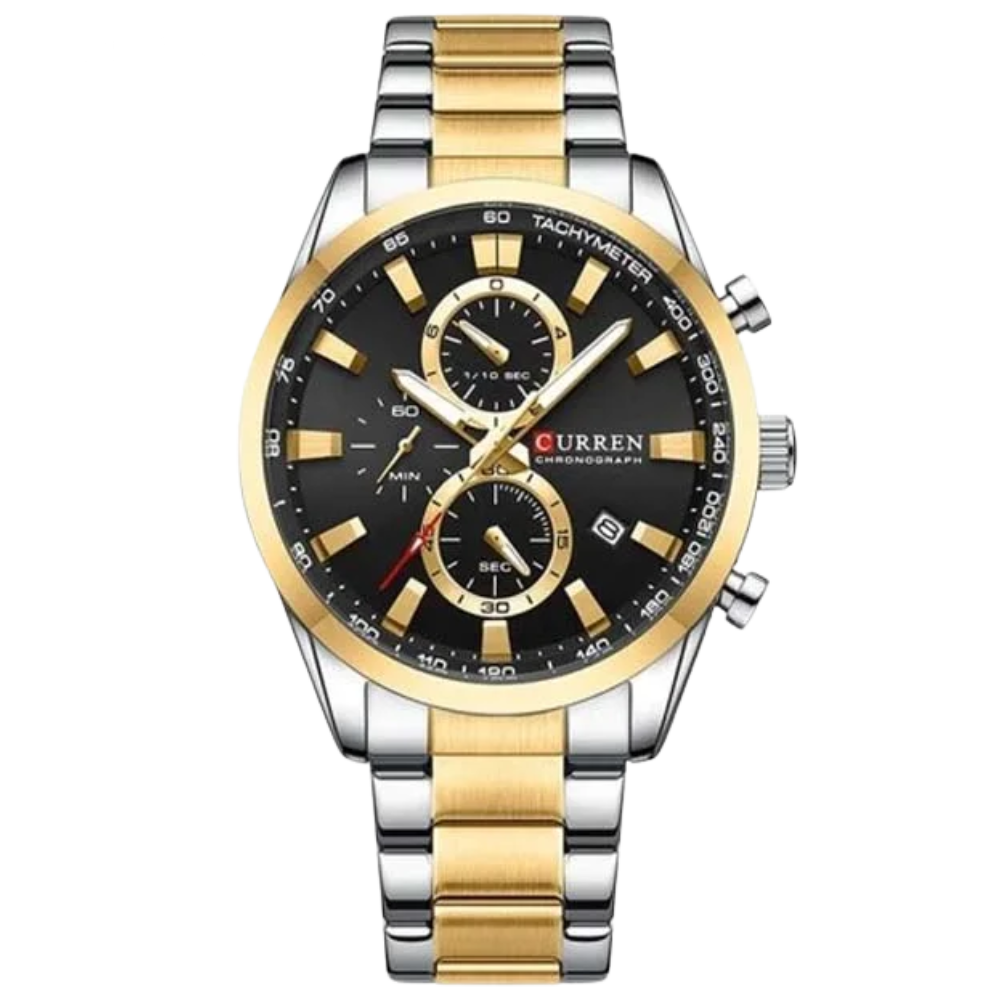 Elevate your wrist game with the CURREN 8445 Men’s Watch, a perfect fusion of bold style and everyday practicality. Featuring a striking black dial housed in a durable alloy case and complemented by a stainless-steel band, this watch delivers strength and sophistication in one sleek package.