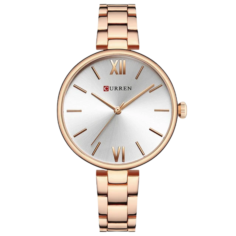 Step into sophistication with the CURREN 9017 Women’s Quartz Watch, where elegance meets everyday functionality. Crafted with a durable alloy case and a steel wire brush band, this timepiece radiates modern luxury while maintaining a lightweight and comfortable fit.