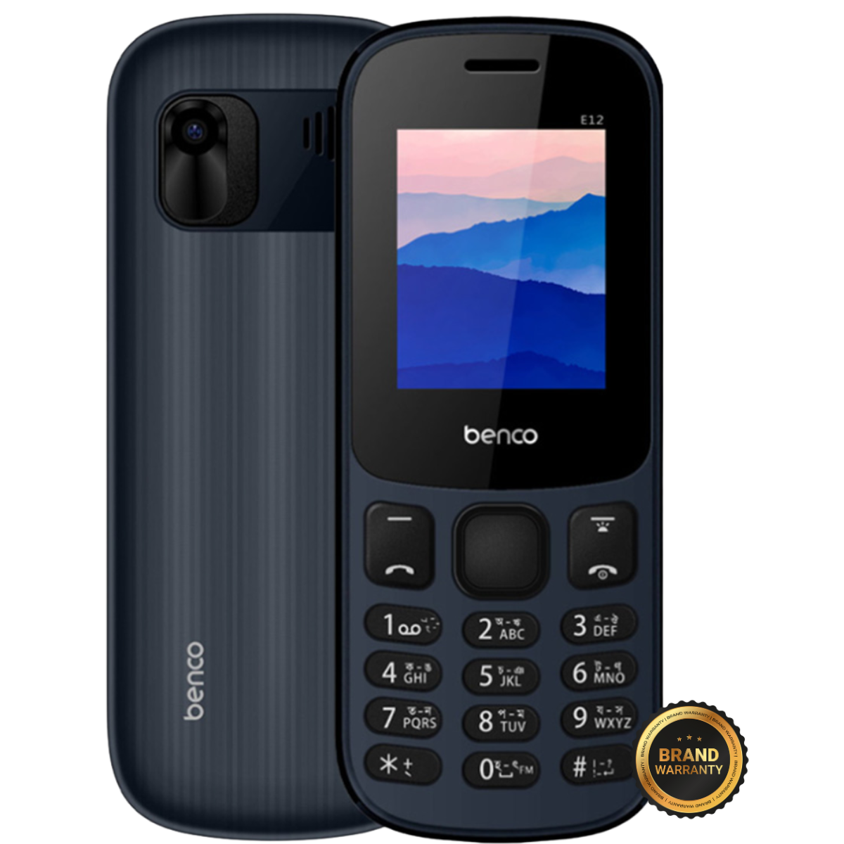 Buy Benco E12 Dual SIM – Compact 2G feature phone with 720p LED display, rear camera, 1000mAh battery, Bluetooth, and up to 240 hours standby.