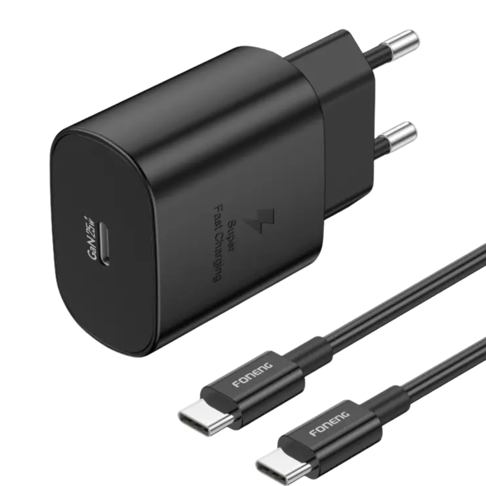 FONENG PD 25W GaN USB-C Wall Charger With Type-C Cable (EU51) Black offers fast, safe, and efficient charging for USB-C devices. Compact, durable, and travel-ready.