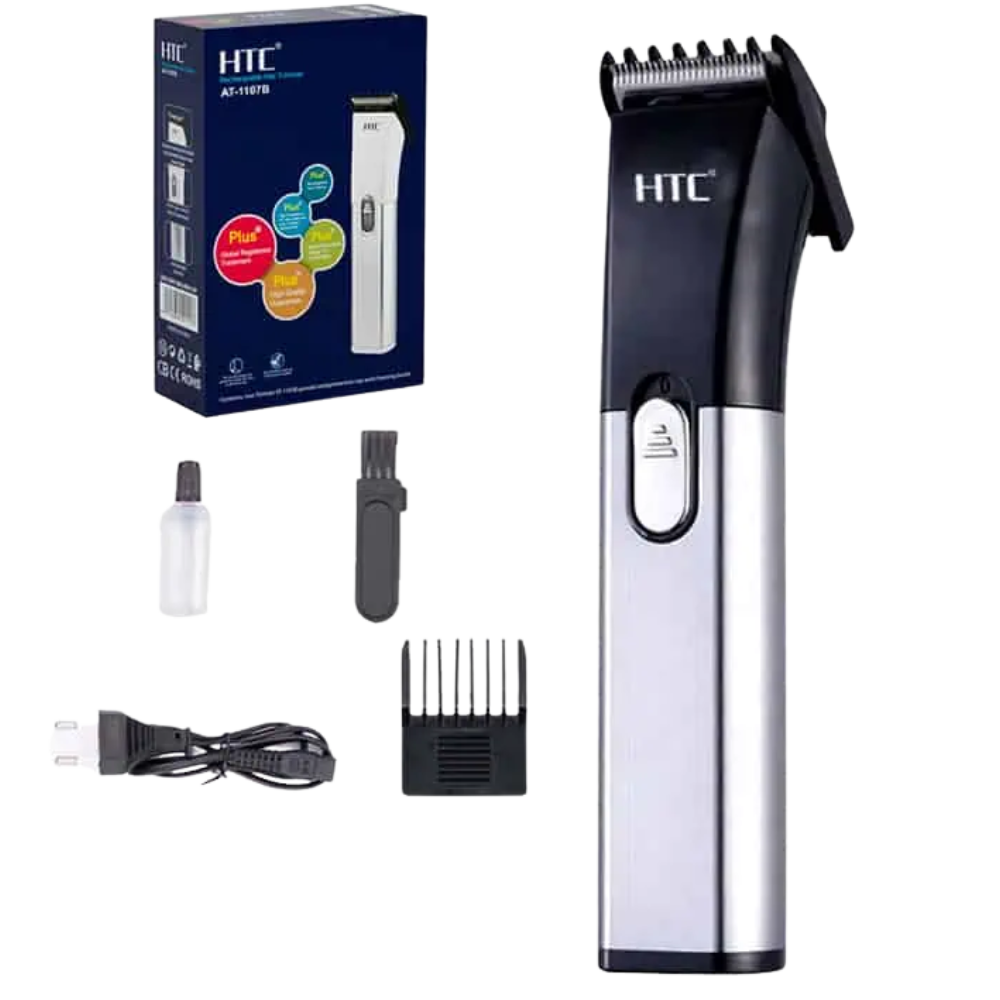 The HTC AT-1107B Beard Trimmer offers precise and smooth trimming with stainless steel blades and a durable ABS body. It runs for 45 minutes after a full charge, making it perfect for daily grooming. With universal voltage support, it delivers reliable performance for effortless beard styling anytime.