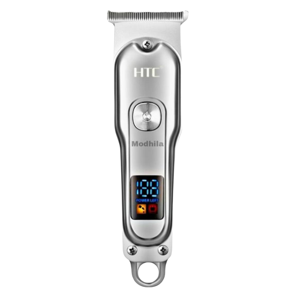 HTC AT-179 beard trimmer and hair clipper for men with stainless steel blades, metal body, 1.5-hour USB fast charging, 90-minute runtime and 6-month motor service warranty.