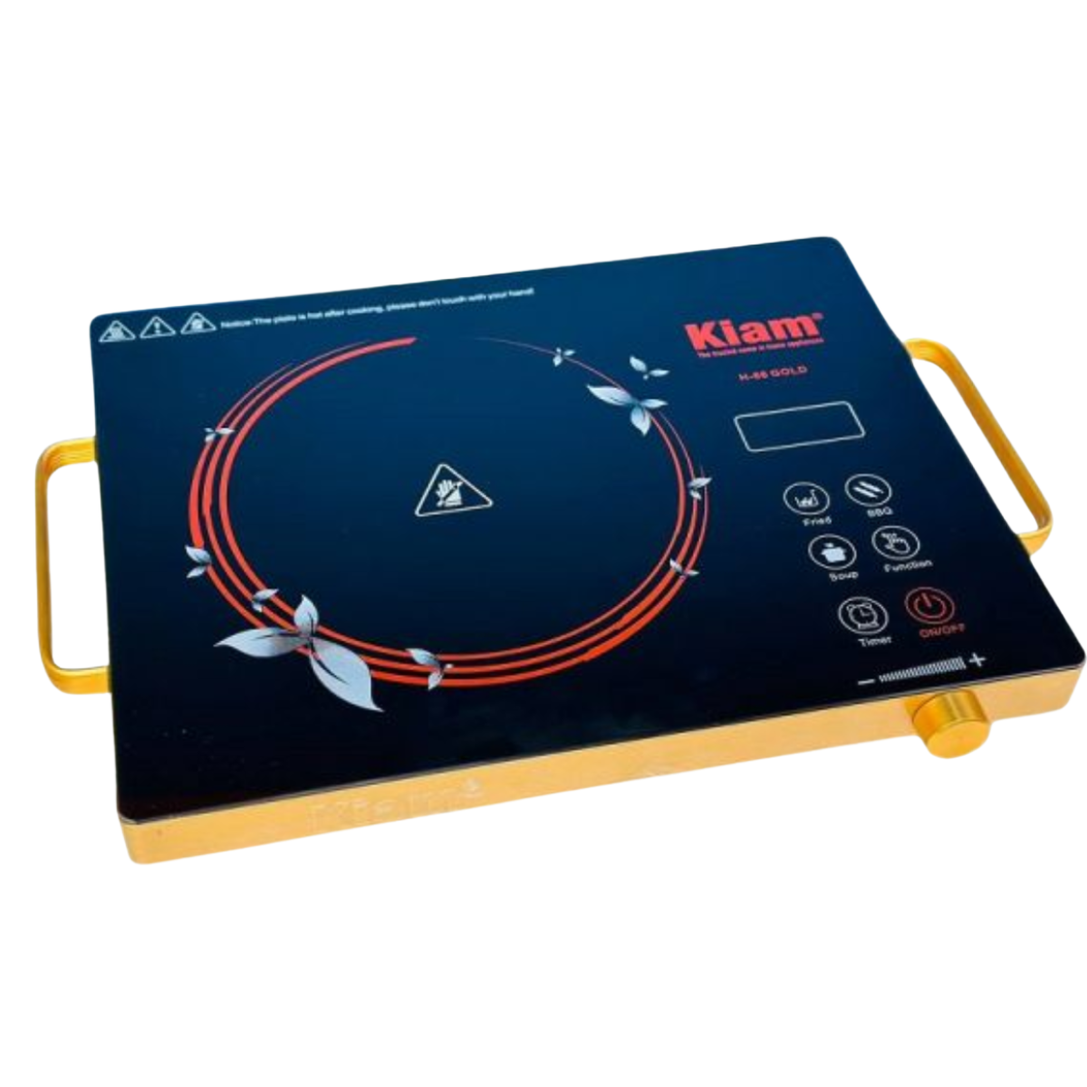 Experience the perfect blend of power, safety, and elegance with the Kiam Infrared Cooker Gold H-66. Built with a super large coil panel and high thermal efficiency, this cooker delivers 2200W strong fire power while saving up to 50% energy. The integral toughened glass top ensures durability, heat resistance, and a premium golden finish that enhances your kitchen’s style.