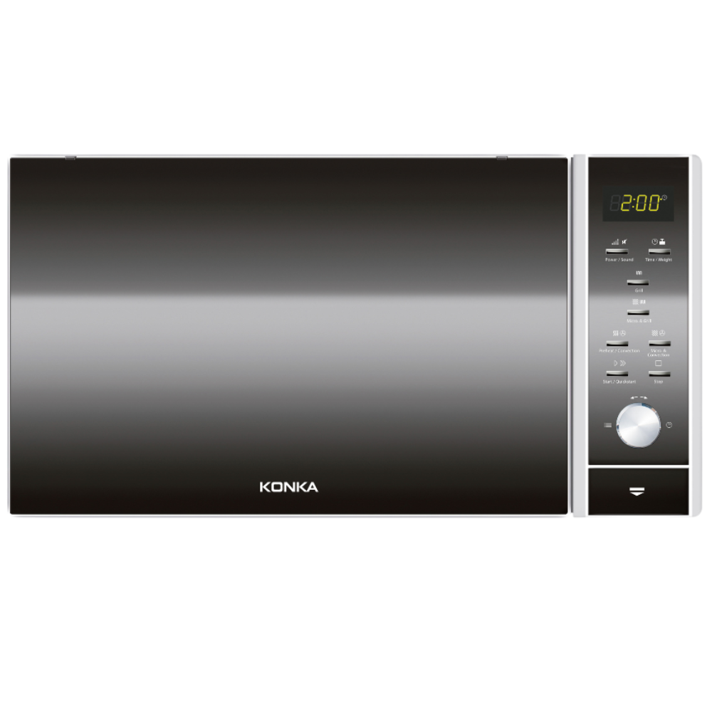 KONKA KD90N30ESPR111-H3 30L Microwave Oven with Convection and Grill offers 11 power levels, 100 auto-cooking menus, and a stylish stainless-steel design. Enjoy efficient 1400W microwave, 1250W grill, and 2200W convection power with digital control and safety features for perfect cooking results.