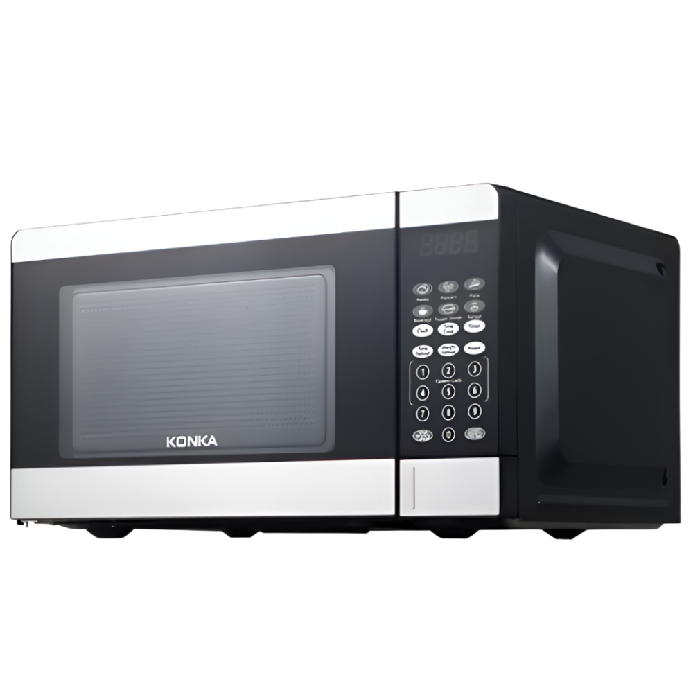 KONKA KP70T20AP-V2 20L Microwave Oven with 700W power offers 6 auto-cooking menus, 10 power levels, and defrost options. Featuring a smart digital touch panel, stainless design, and safety lock, this microwave ensures efficient cooking with a modern look.