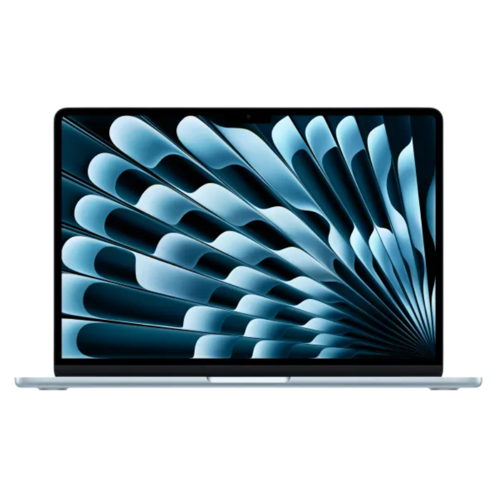 MacBook Air 13" M4 with 10-core CPU, 10-core GPU, 16GB RAM, and 512GB SSD. Stunning 13.6" Liquid Retina display, 12MP Center Stage camera, Spatial Audio, and premium Apple performance in a lightweight Sky Blue design.