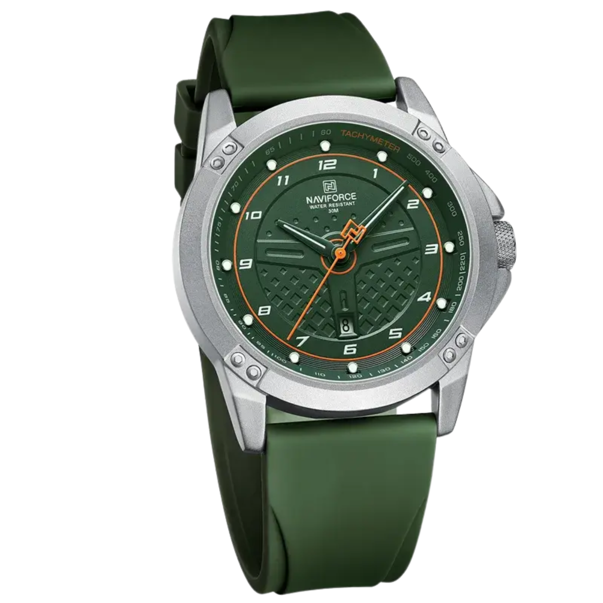 Shop NAVIFORCE NF8031 men’s watch featuring a durable zinc alloy case, lightweight fumed silica strap, 45mm dial, and 2-year battery life. Perfect for casual and sports occasions.