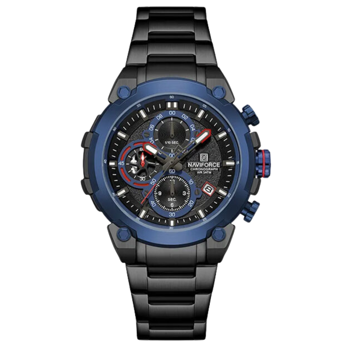 The NAVIFORCE NF8071 Chronograph Men’s Watch is designed for those who value bold style, durability, and precision in one premium timepiece. Built with a zinc alloy outer casing and stainless-steel closed caseback, this watch delivers outstanding strength and long-lasting performance. It features a high-accuracy quartz chronograph movement, ensuring precise timekeeping and reliable stopwatch functionality for daily use. The 43mm rounded case, 14mm thickness, and hardened mineral crystal offer exceptional resistance to scratches and impact. With 3ATM water resistance, the NF8071 can handle everyday splashes and moisture with ease. The wide 25mm strap at the lug and 20mm at the buckle ensure a comfortable and secure fit for all-day wear. Highly searched across Google, Facebook, Instagram, and TikTok as “chronograph men’s watch,” “luxury casual watch,” and “water-resistant quartz watch,” this model stands out as a perfect mix of performance, ruggedness, and modern fashion. Ideal for business, sports, or daily styling.