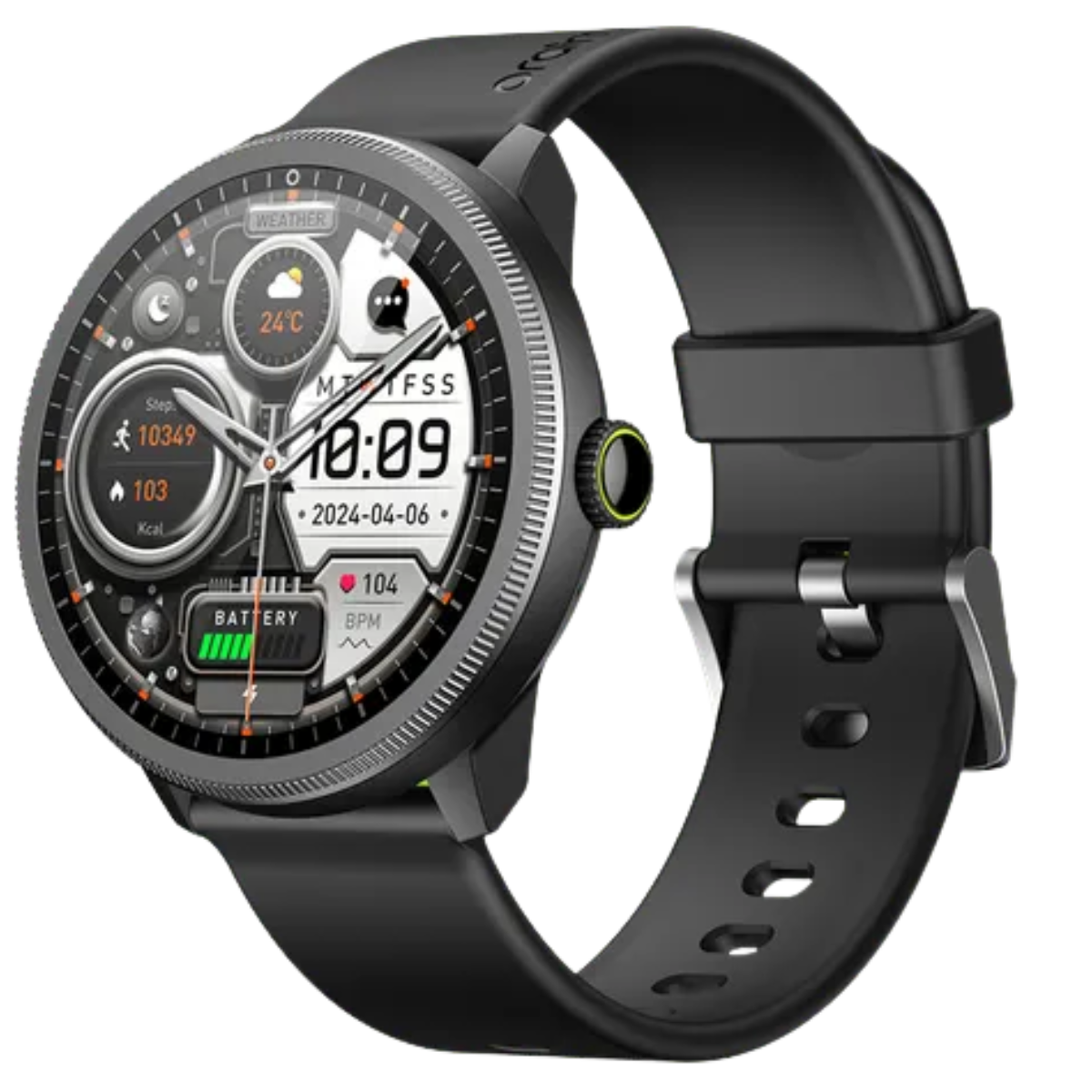 The Oraimo Watch 5R (OSW-820) – Black is a feature-packed smartwatch combining style, health tracking, and convenience. Its 1.43-inch AMOLED display with 466×466 resolution delivers crisp visuals and smooth touch controls, perfect for daily use. With Bluetooth 5.3 and wireless HD calling, you can make and receive calls directly from your wrist. The watch offers 24/7 heart rate and SpO₂ monitoring, sleep tracking, stress analysis, and women’s health tracking including period and ovulation reminders. Fitness enthusiasts can access 100+ sports modes, step counting, calorie tracking, and real-time workout analysis. Built with ABS, PC, and silicone, it is lightweight yet durable and IP68 dust and water resistant. The 300mAh battery provides up to 10 days of usage and 32 days standby. With 120+ AI-generated watch faces and full app integration via the Oraimo Health App, it’s ideal for fitness, lifestyle, and smart connectivity.