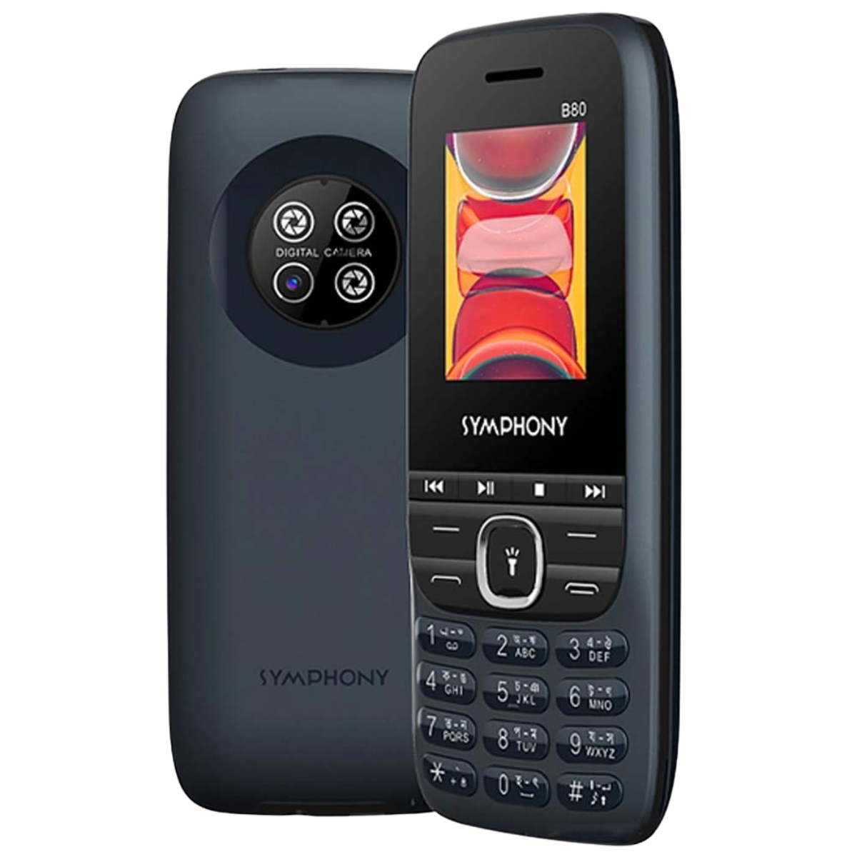 Powered by a removable 1000mAh Li-Ion battery, the Symphony B80 provides reliable talk time and standby performance. Available in Ink Black, Navy Blue, and Sky Blue, it comes with a 1-year warranty, making it an ideal choice for a practical, feature-rich, and easy-to-use mobile device.