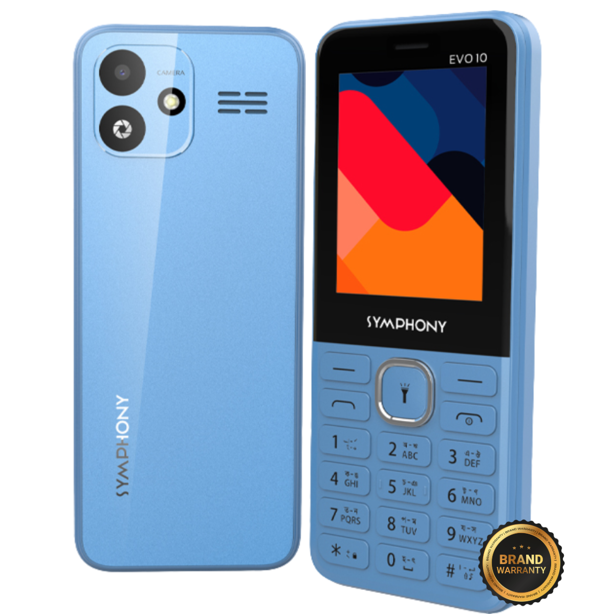 The Symphony Evo 10 is a modern 4G-enabled feature phone designed for fast connectivity and smooth performance. With Dual Nano SIM support and VoLTE capability, it ensures crystal-clear calls and quick internet access. The 2.4-inch display provides a clear and comfortable viewing experience, while the slim design makes it easy to carry.