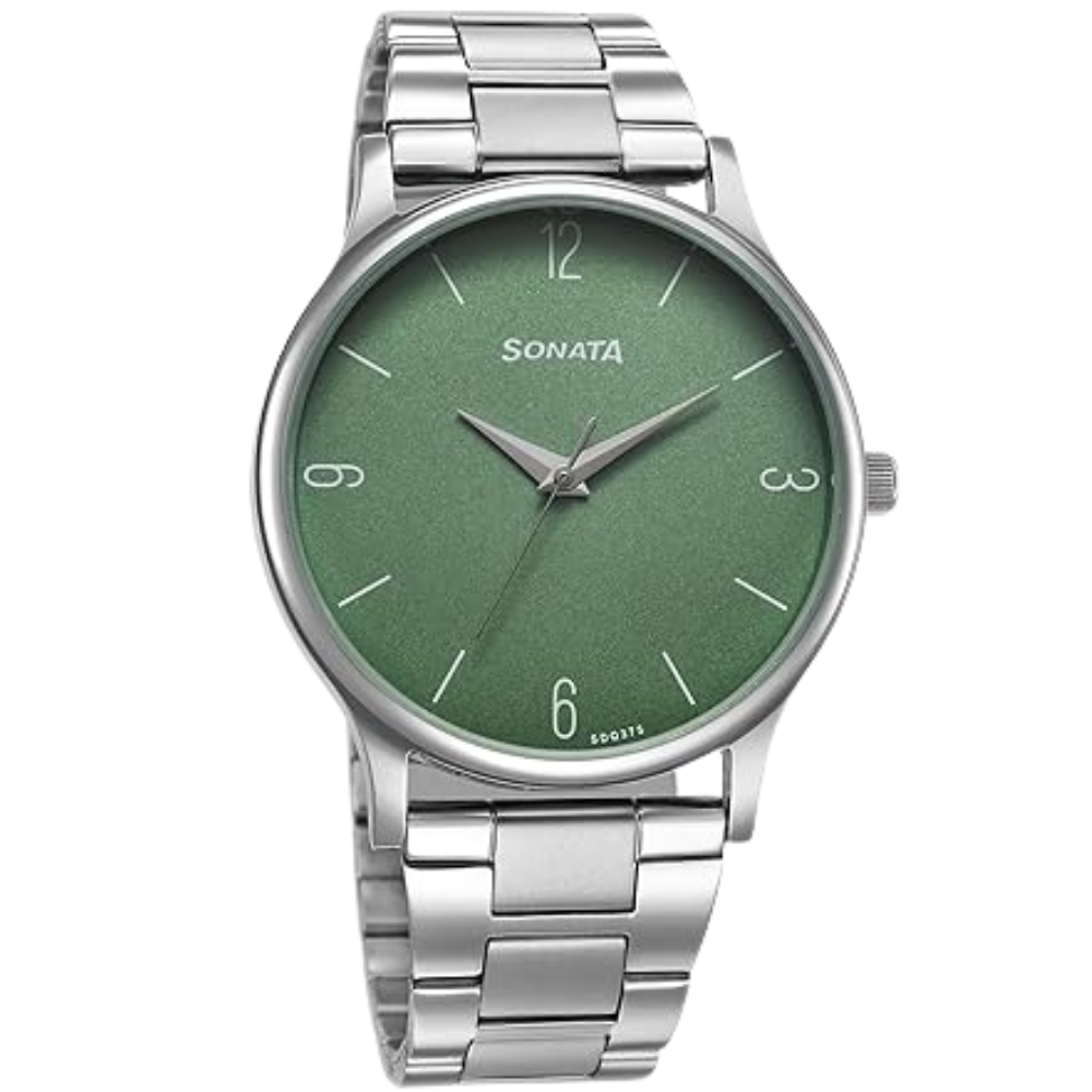 Sonata Aspire Quartz Analog Green Dial Stainless Steel Strap Watch for Men-77105SM13