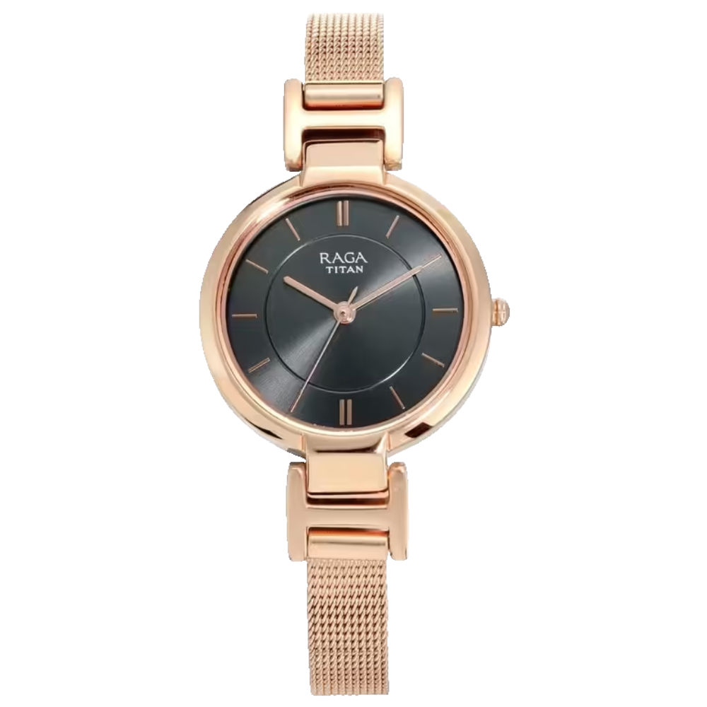 Experience refined beauty with the Titan Raga Viva 2608WM02 — featuring an anthracite dial, metal strap, and 3 ATM water resistance for elegant everyday wear.