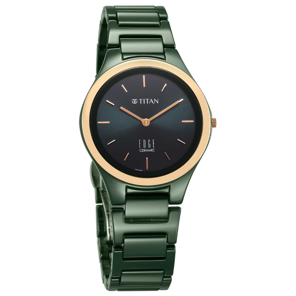 Titan 2653KC12 Edge Bicolour Quartz Analog Green Dial Green Ceramic Strap Watch for Women