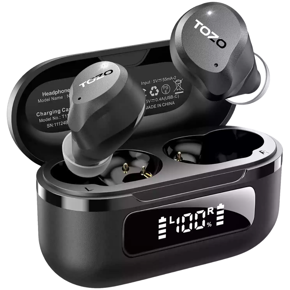 TOZO AeroSound Hybrid ANC Wireless Earbuds – 10mm Drivers, Hybrid Noise Cancellation 45dB, 55h Battery, IPX8 Water-Resistant, ENC Calls, Transparent Mode, 32 EQ Modes.