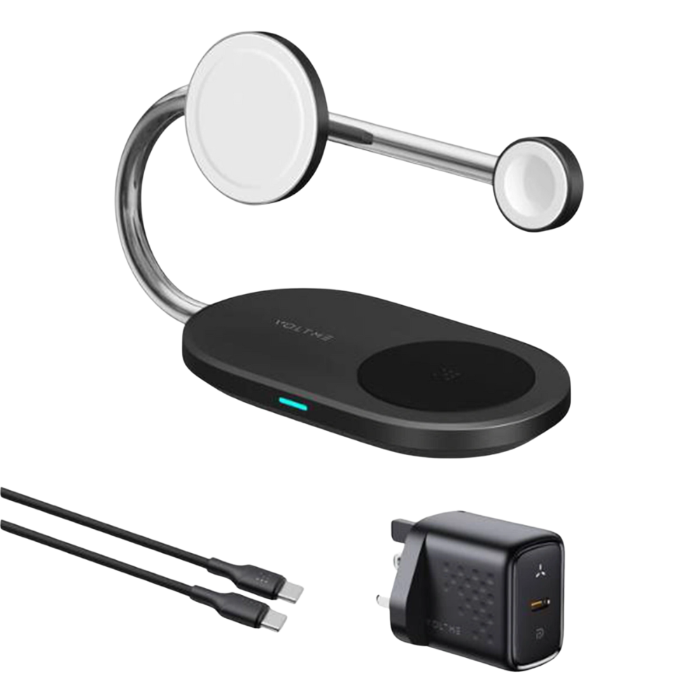 The VOLTME MagPak 3-in-1 is a premium wireless charging solution designed to power your smartphone, smartwatch, and earbuds simultaneously. Its advanced Qi2 technology ensures faster, more efficient, and safer wireless charging, compatible with the latest Qi2-enabled devices.