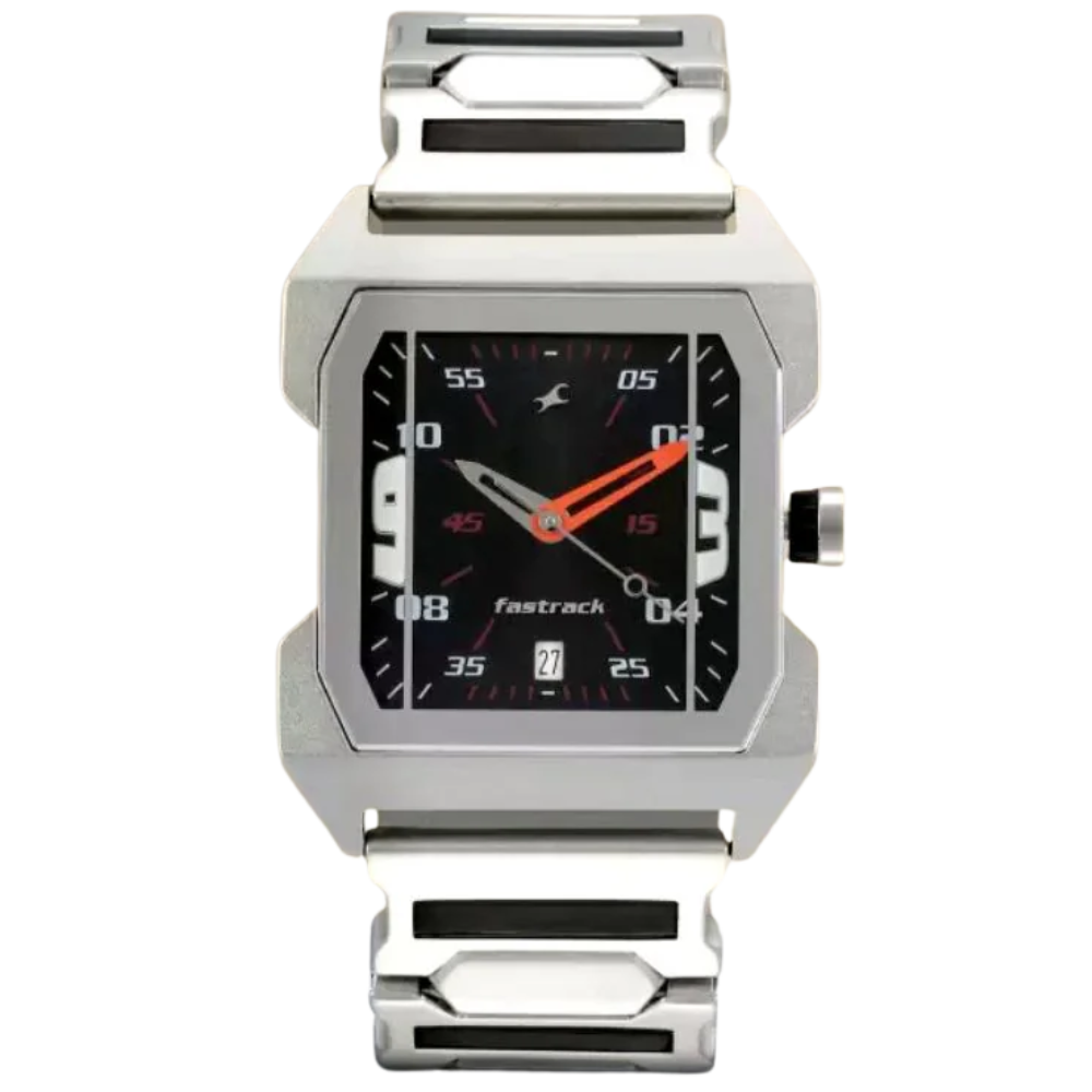 Upgrade your accessory game with the Fastrack Party Date Silver Chain Watch 1474SM02 (Code: WW0333) – the ultimate blend of elegance and functionality. Designed for men who value style and precision, this watch boasts a sleek rectangular case (45mm x 36mm) crafted from durable alloy, complemented by a mineral glass dial for superior clarity and scratch resistance.